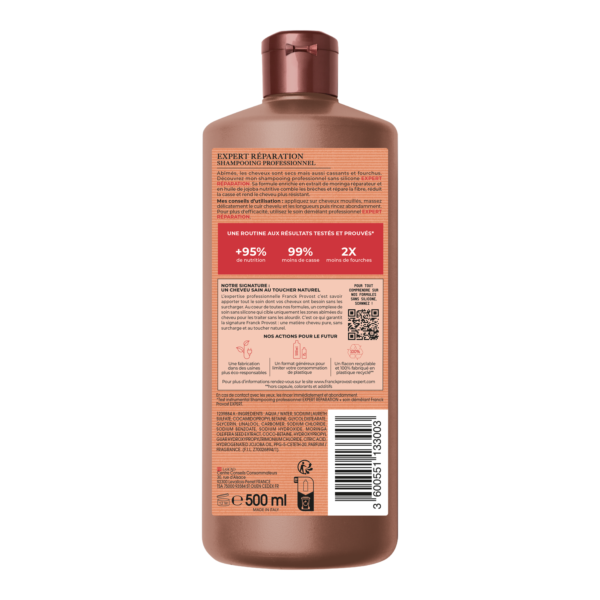 Pour encore plus d'efficacité, utilisez l'Après-Shampoing Salon, le Masque Salon et le Soin Salon Sans Rinçage EXPERT REPARATION.