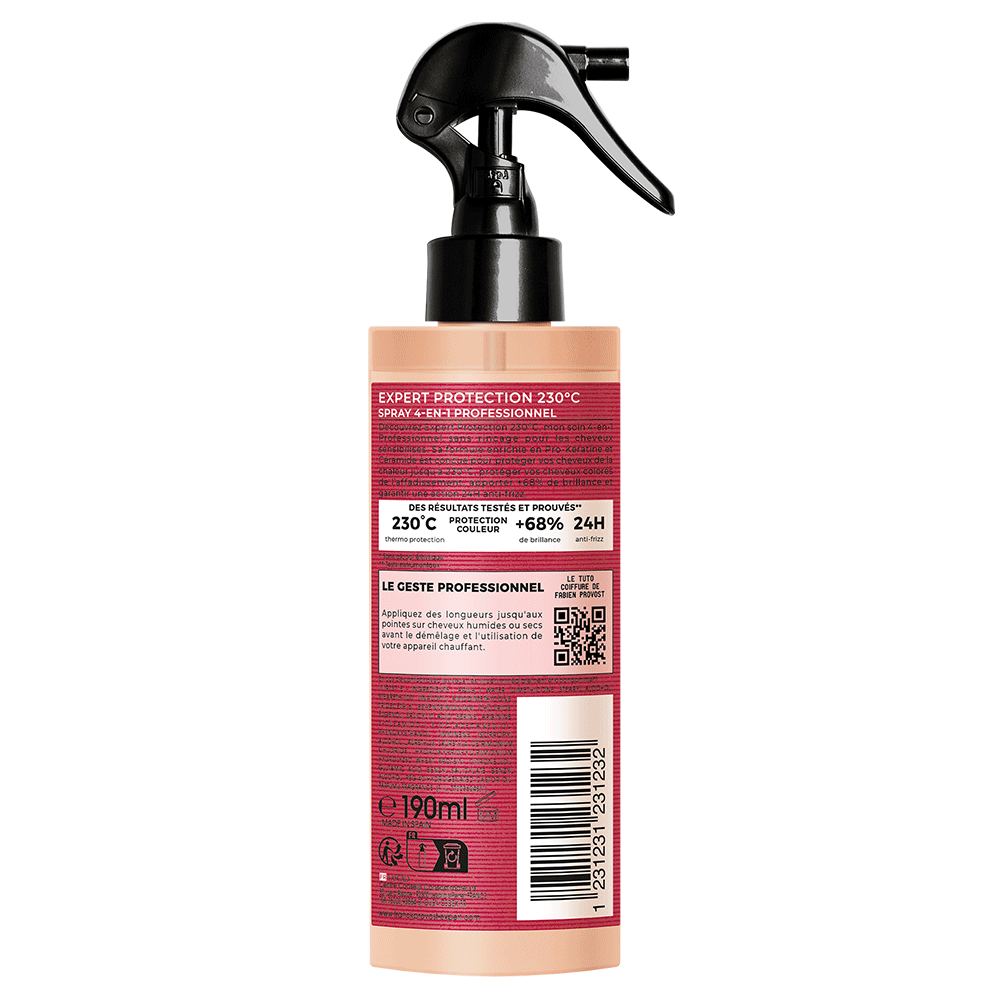 Vos cheveux sont sensibilisés par l’utilisation régulière d’appareils chauffants (sèche-cheveux, fer à lisser…) ? Découvrez mon Soin Professionnel Expert Protection 230°C*. Enrichie en Pro-Kératine, sa formule est conçue pour une matière cheveu protégée de la chaleur jusqu’à 230°C.